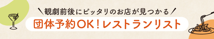 劇団四季公演の前後で営業しているお店を検索できます。ぜひお立ち寄りください。