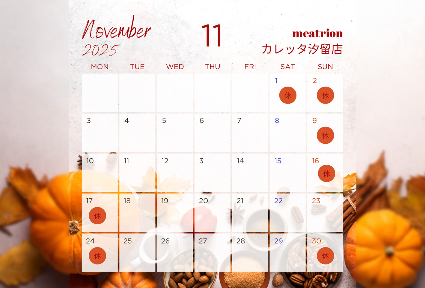 臨時 営業日変更のお知らせ(2025年11月)【B2F・ミートリオン 】