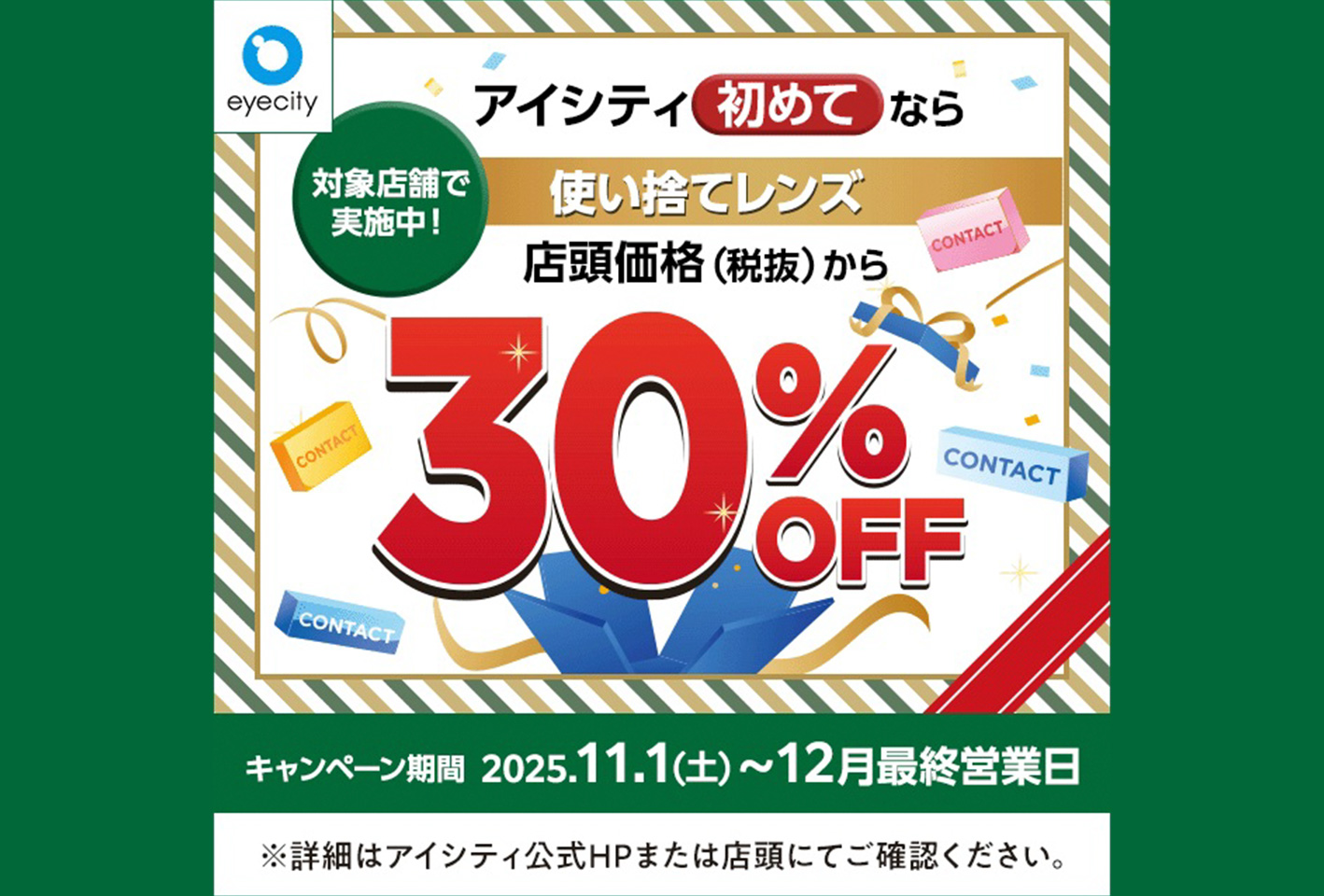【12月末まで】\アイシティ初めてなら/使い捨てレンズが店頭価格(税抜)から30%OFF!【B1F・コンタクトのアイシティ】