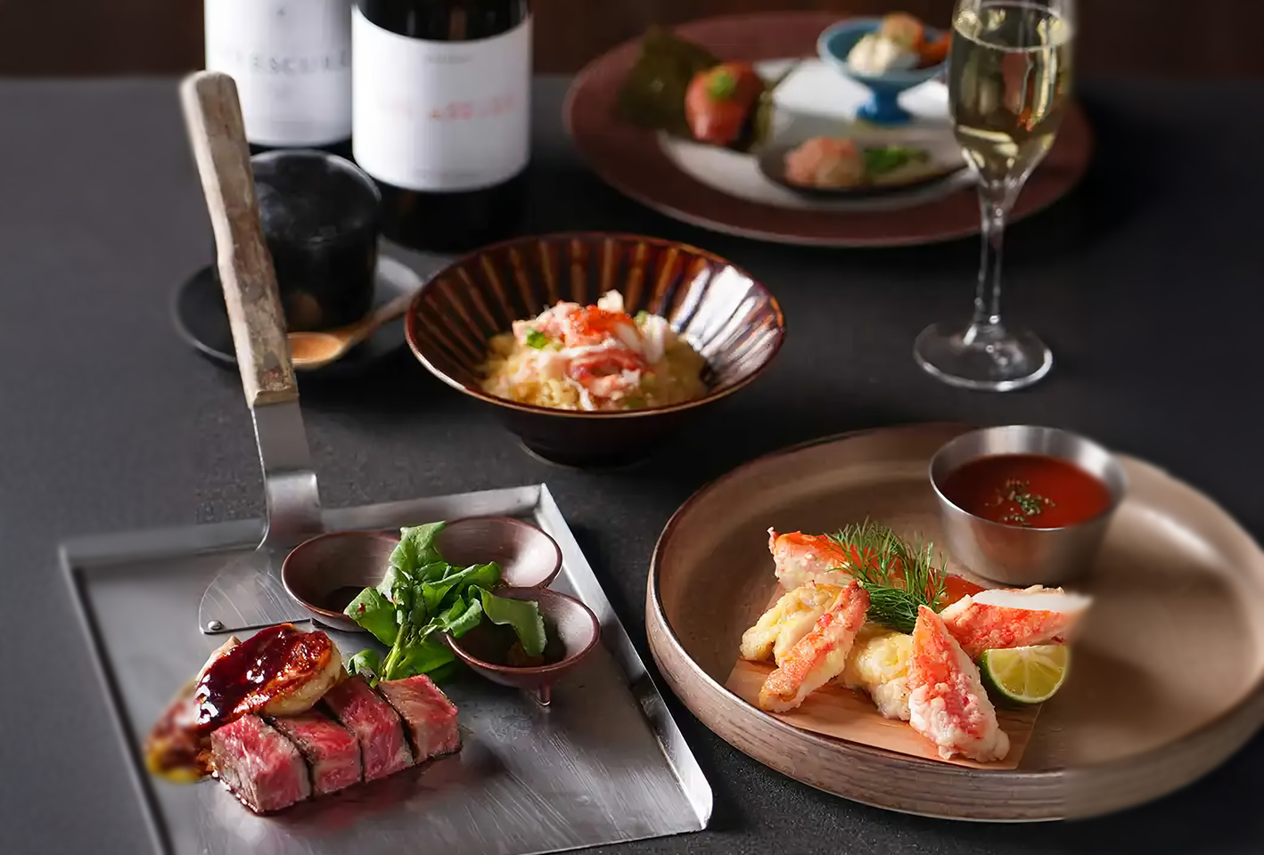 タラバ蟹・黒毛和牛・フォアグラを堪能する鉄板和食コース