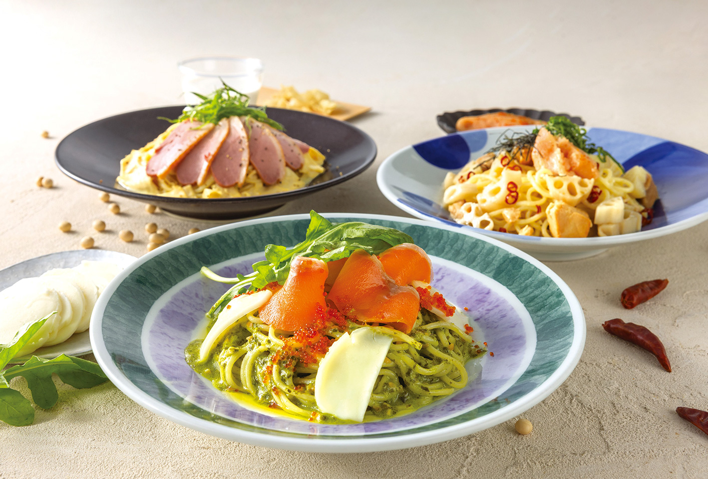 日本各地の厳選した食材を贅沢に使った期間限定の3種類の生パスタが登場。