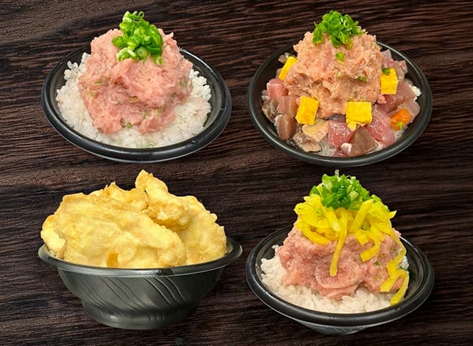 MORE名物のネギトロ丼をはじめ、トロたく丼、まかない海鮮丼、とり天丼がご自宅や職場のランチタイムでもお楽しみいただけるようになりました。